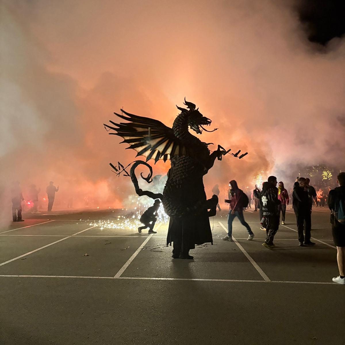 La jornada va començar al carrer Mas Clarà, amb la plantada de bèsties i una gran exposició de figures vingudes d’arreu del país, acompanyada d’un vermut musical amb Toni Cayena. A la tarda, les colles participants vam prendre part a la cercavila de bèsties, que va omplir els carrers de color i alegria, i que va culminar amb una cercavila de foc espectacular fins al camp de futbol vell.
